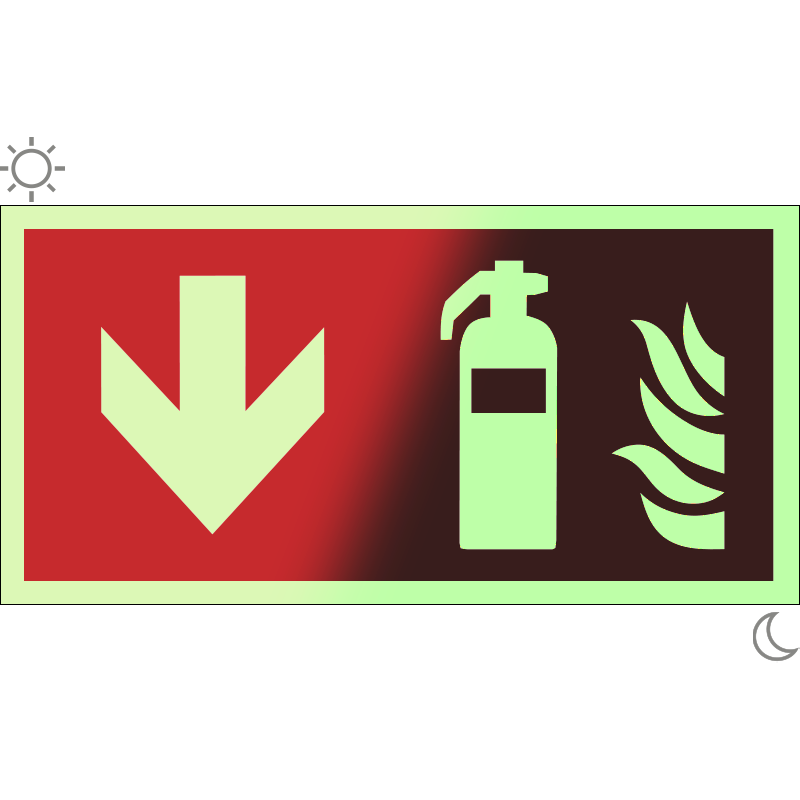 Tűzoltó készülék (előre, le) utánvilágító matrica (ISO 7010-F001 piktogram) 400x200 mm TUT074002UTV04000200 utánvilágító öntapadó 400 mm 200 mm 0.5 mm db 3950 Ft 5017 Ft