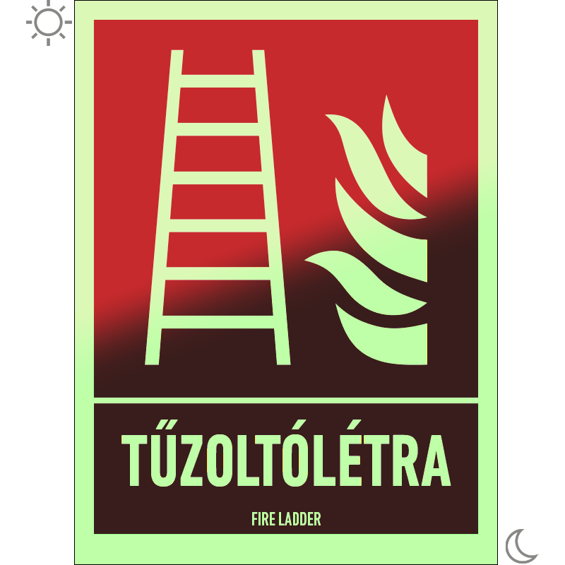 | Tűzoltólétra utánvilágító tábla (ISO 7010-F003 piktogram + felirat) 150x200 mm TUT004001UTG01500200 | PET-G 0,7 mm+utánvilágító vinil | 150 mm | 200 mm | 1.5 mm | db | 1625 Ft | 2064 Ft |