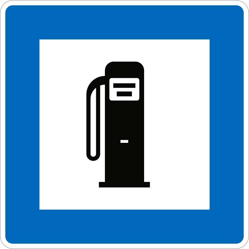 Üzemanyagtöltő állomás KRESZ közlekedési tábla