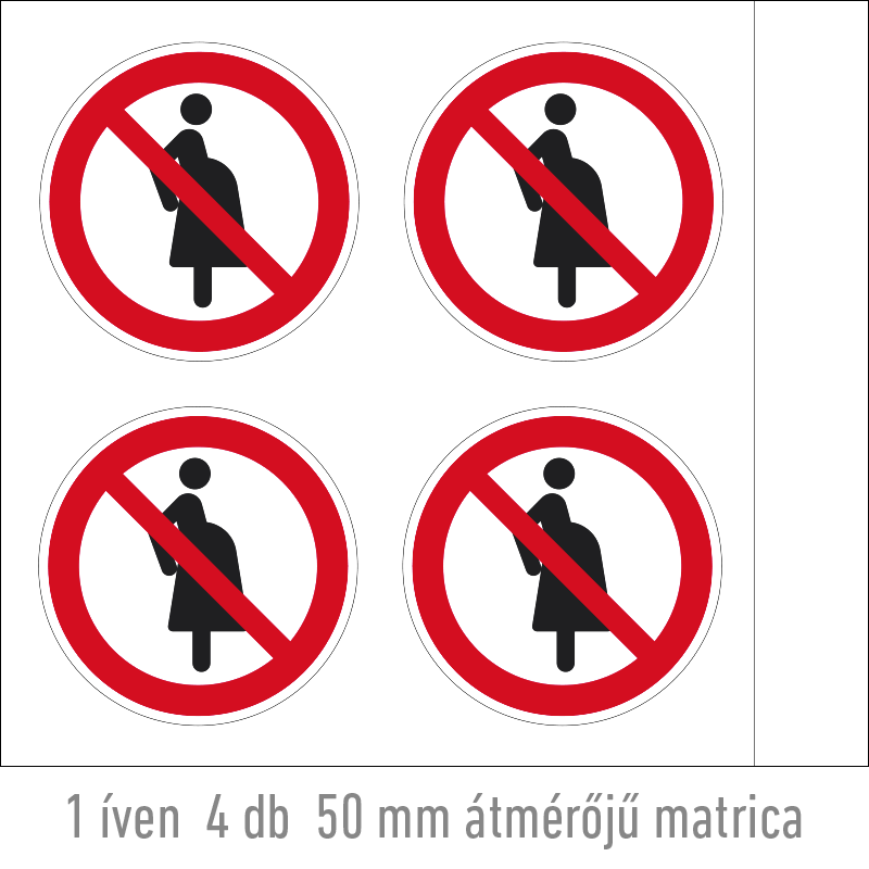 | Várandós nőknek belépni tilos! matrica (ISO 7010-P042 piktogram) 50 mm TIT076000ONV00500000 | vinil öntapadó | 50 mm | 50 mm | 0.2 mm | ív | 330 Ft | 419 Ft |