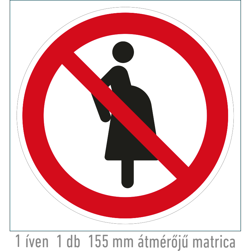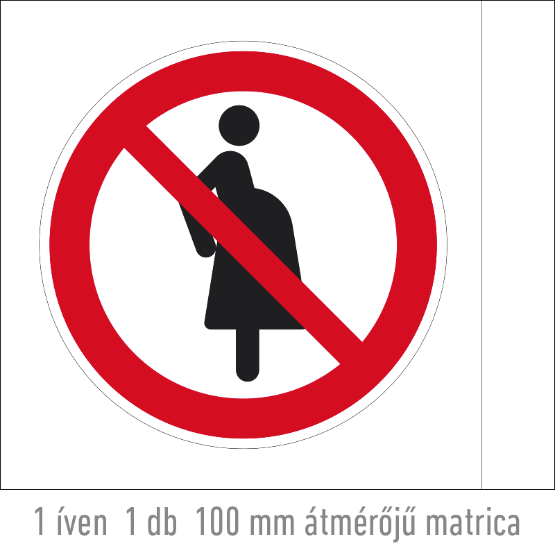 | Várandós nőknek belépni tilos! matrica (ISO 7010-P042 piktogram) 100 mm TIT076000ONV01000000 | vinil öntapadó | 100 mm | 100 mm | 0.2 mm | db | 225 Ft | 286 Ft |