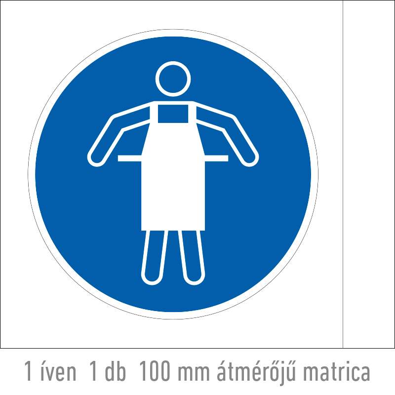 | Védőkötény használata kötelező! matrica (ISO 7010-M026 piktogram) 100 mm BIT019000ONV01000000 | vinil öntapadó | 100 mm | 100 mm | 0.2 mm | db | 225 Ft | 286 Ft |