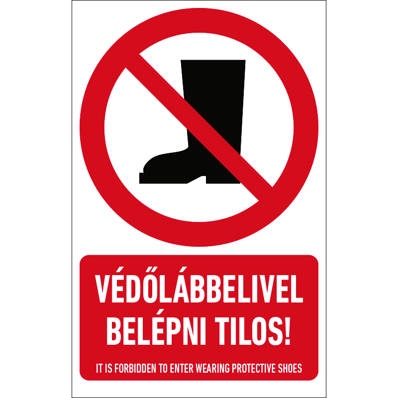 A “Védőlábbelivel belépni tilos!” a védőlábbelivel történő belépést tiltó piktogram+felirat.