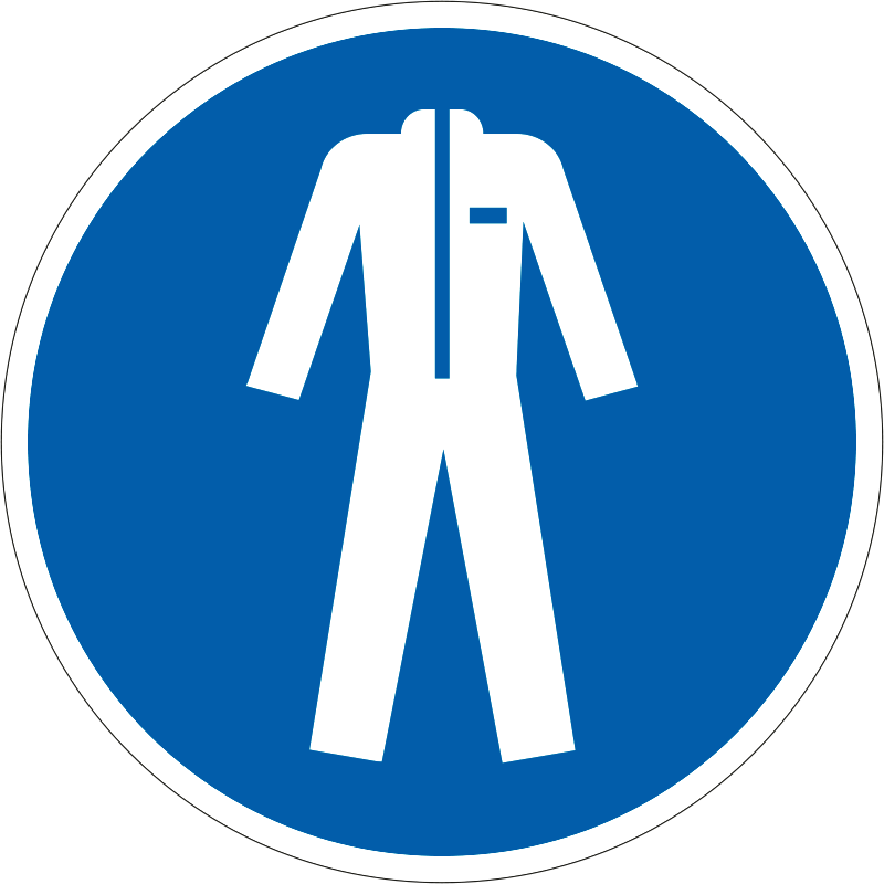 A “Védőruházat használata kötelező!” az egészség védelmére vonatkozik: munkavédelmi védőruha használatát előíró kék alapon fehér piktogram.