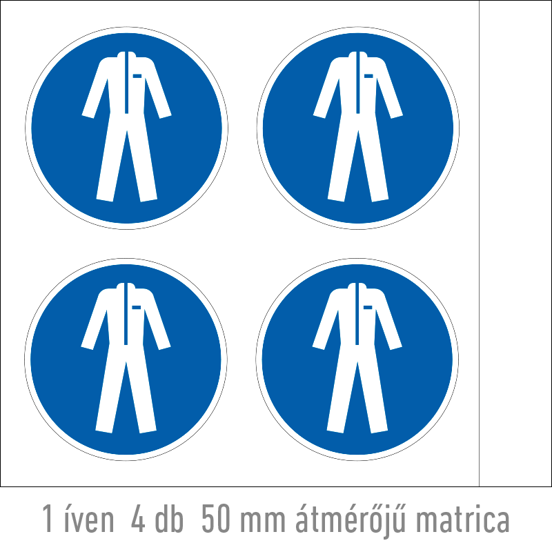 | Védőruházat használata kötelező! matrica (ISO 7010-M010 piktogram) 50 mm BIT020000ONV00500000 | vinil öntapadó | 50 mm | 50 mm | 0.2 mm | ív | 330 Ft | 419 Ft |