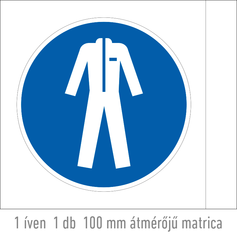 | Védőruházat használata kötelező! matrica (ISO 7010-M010 piktogram) 100 mm BIT020000ONV01000000 | vinil öntapadó | 100 mm | 100 mm | 0.2 mm | db | 225 Ft | 286 Ft |