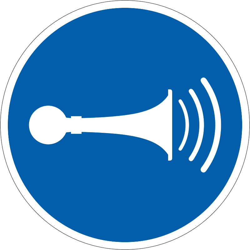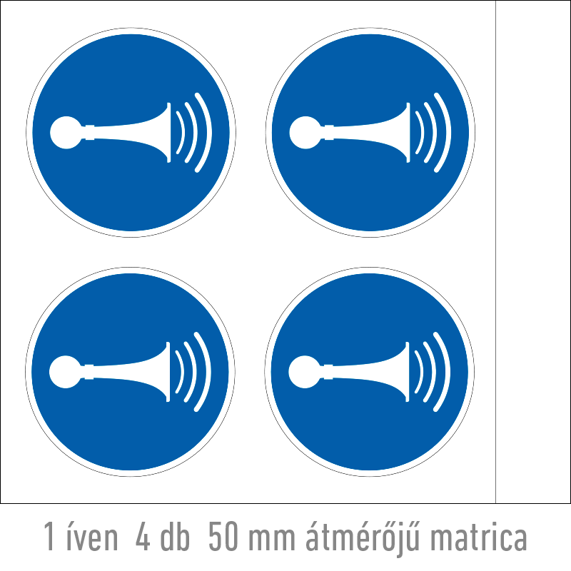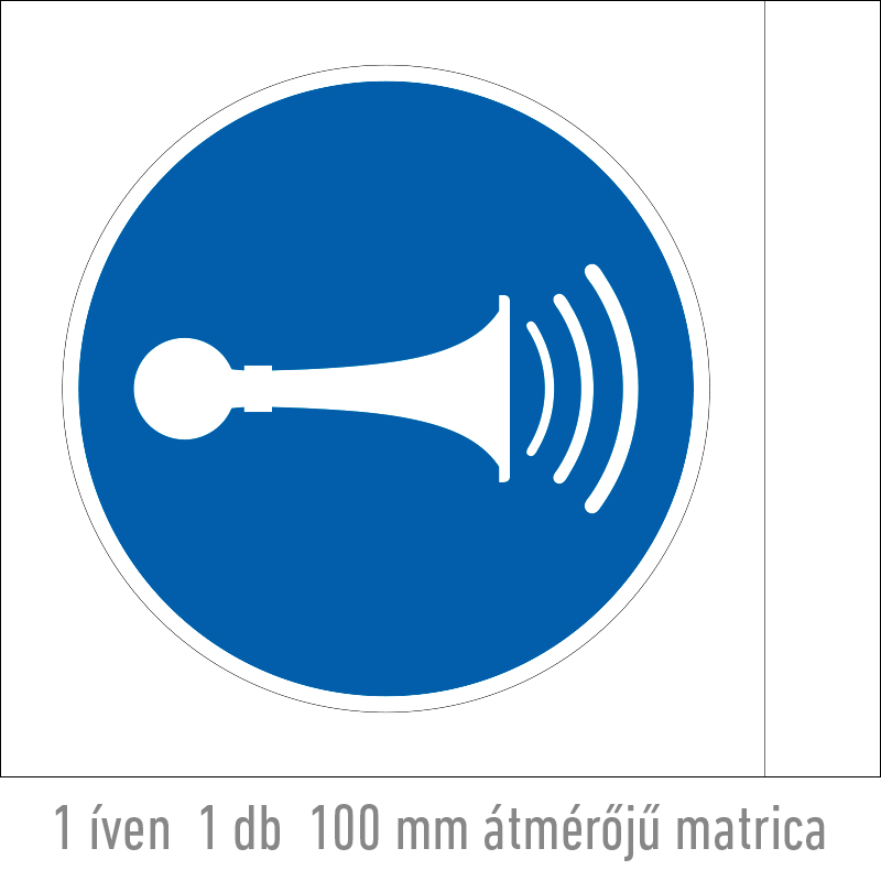 A “Veszély esetén adjon hangjelzést!” a munkaterületen a biztonság érdekében hangjelzést előíró kék alapon fehér piktogram.