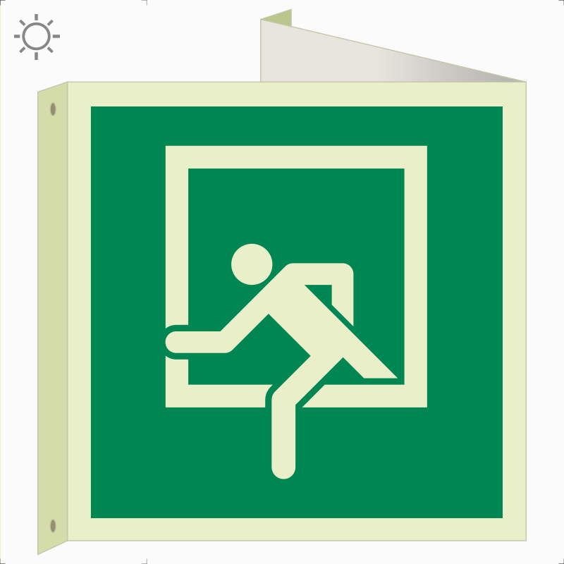 | Vészkijárati ablak utánvilágító tábla, faltól elálló, sátor alakú, kétoldalas (ISO 7010-D-E019 piktogram) 150x150 mm MET105003UTM01500150 | utánvilágító PVC | 255 mm | 150 mm | 100 mm | db | 3250 Ft | 4128 Ft |