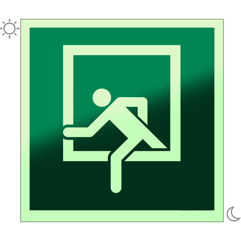 A “Vészkijárati ablak” a vészhelyzetben menekülésre használható ablakot jelző zöld alapon fehér piktogram.