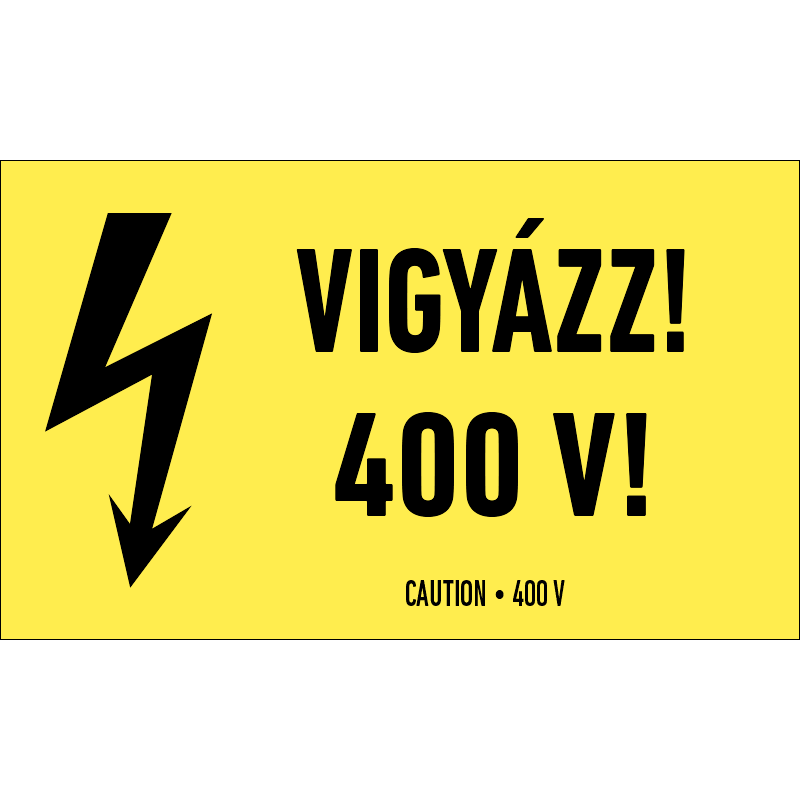 A “Vigyázz! 400 V!” a nagyfeszültségű áram veszélyére figyelmeztet.