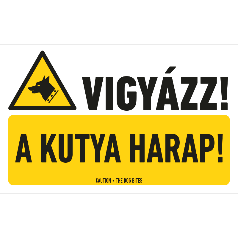 “Vigyázz! A kutya harap!” a kutyaharapás veszélyére figyelmeztető grafika+felirat.