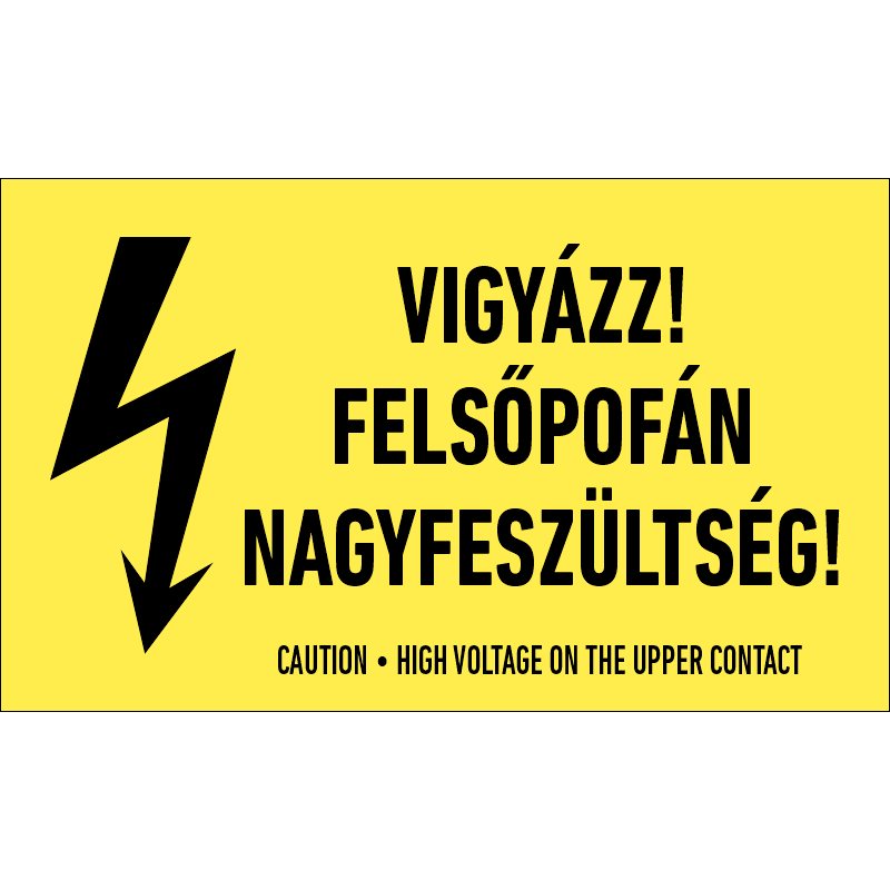 A “Vigyázz! Felsőpofán nagyfeszültség!” a nagyfeszültség veszélyére figyelmeztet.