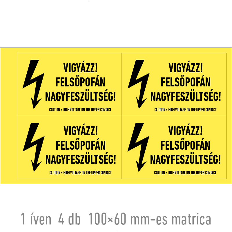 Vigyázz! Felsőpofán nagyfeszültség! matrica 100x60 mm ERV005001ONV01000060 vinil öntapadó 100 mm 60 mm 0.2 mm ív 275 Ft 349 Ft