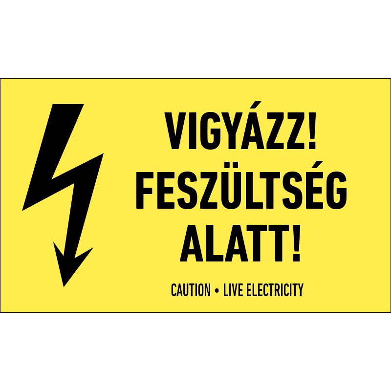 A “Vigyázz! Feszültség alatt!” a feszültség alatti elektromos vezetékre vagy berendezésre figyelmeztet.