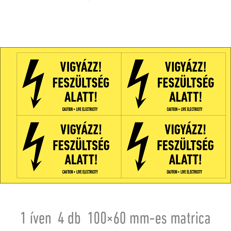 | Vigyázz! Feszültség alatt! matrica 100x60 mm ERV060001ONV01000060 | vinil öntapadó | 100 mm | 60 mm | 0.2 mm | ív | 275 Ft | 349 Ft |