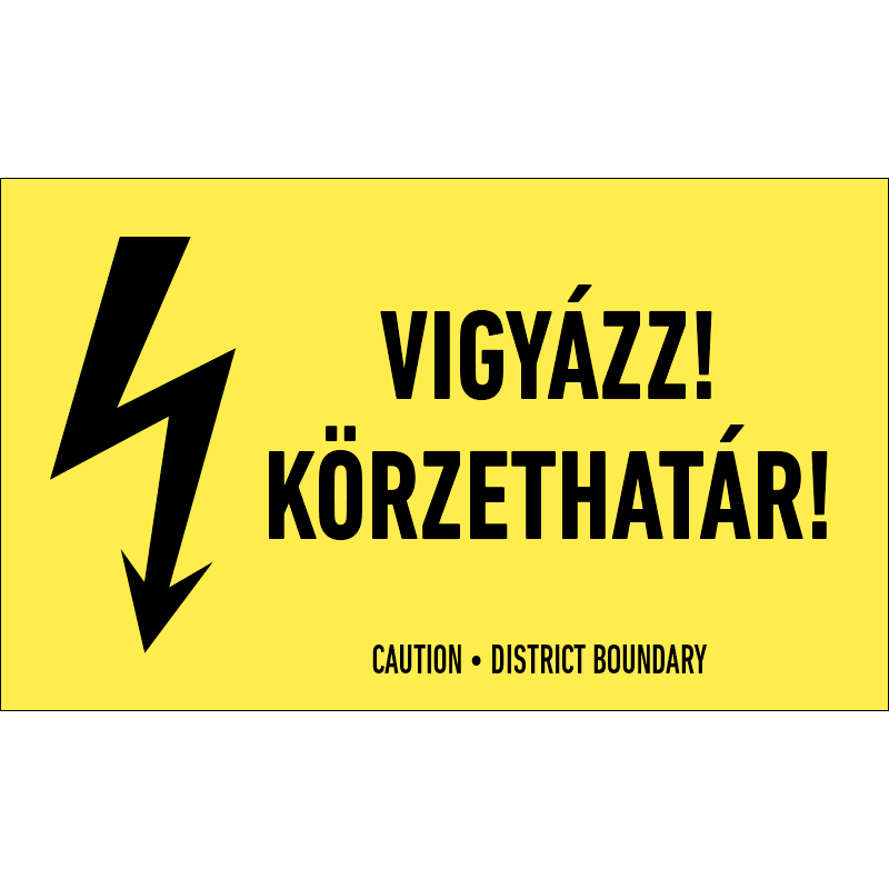 A “Vigyázz! Nagyfeszültség! Maradj távol!” a nagyfeszültségű áram veszélyére figyelmeztet.