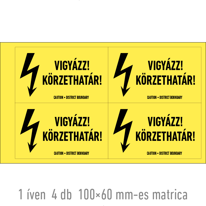 | Vigyázz! Körzethatár! matrica 100x60 mm ERV049001ONV01000060 | vinil öntapadó | 100 mm | 60 mm | 0.2 mm | ív | 275 Ft | 349 Ft |