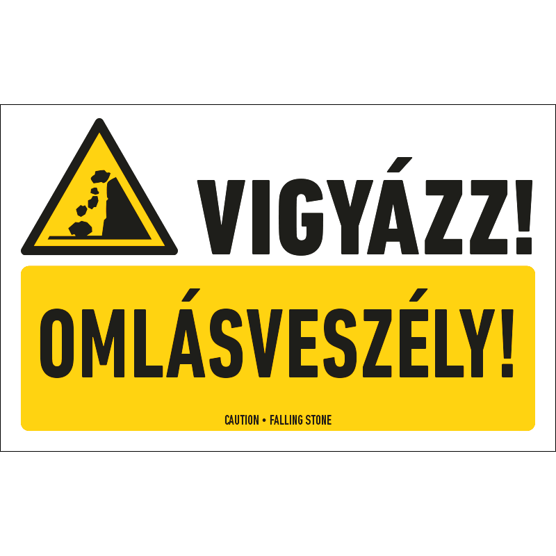 | Vigyázz! Omlásveszély! tábla (piktogram + felirat) 400x250 mm VET027001ACP04000250 | alumínium szendvicslemez 2 mm | 400 mm | 250 mm | 2 mm | db | 3075 Ft | 3905 Ft |