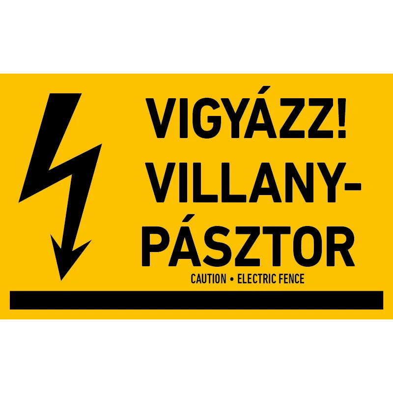 A “Vigyázz! Villanypásztor!” az elektromos elkerítő huzal veszélyére figyelmeztet.