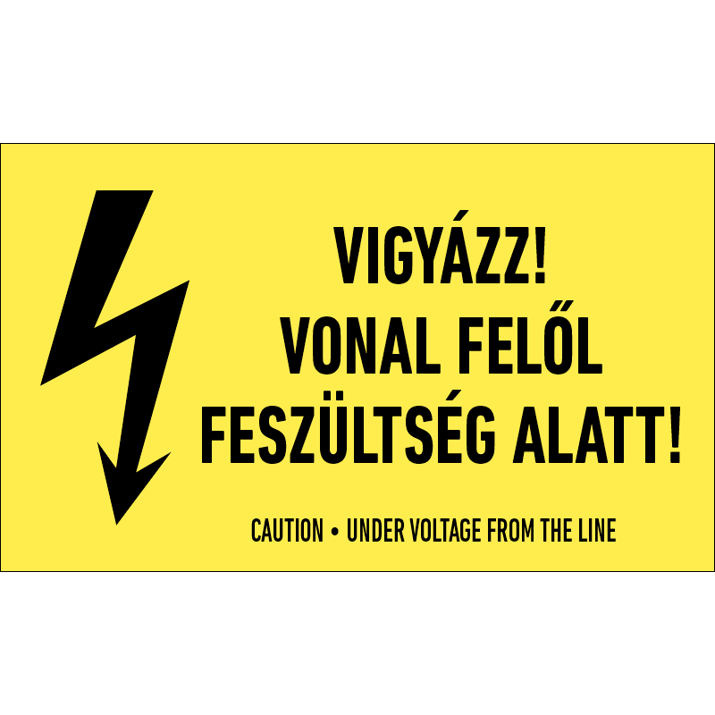 A “Vigyázz! Vonal felől feszültség alatt!” a feszültség alatt lévő elektromos berendezés érintésének veszélyére figyelmeztet.