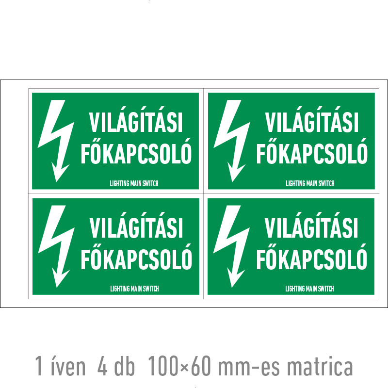 | Világítási főkapcsoló tábla 250x160 mm ERV033001PET02500160 | PET-G 0,7 mm+kétoldalas ragasztó | 250 mm | 160 mm | 1 mm | db | 1100 Ft | 1397 Ft |