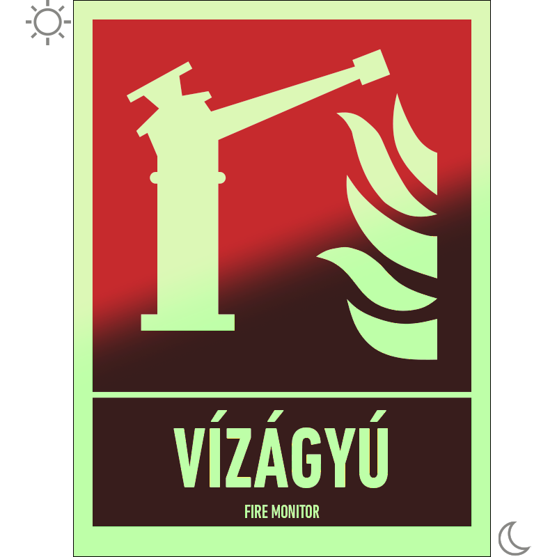 Vízágyú utánvilágító tábla (ISO 7010-F015 piktogram + felirat) 150x200 mm TUT071002UTG01500200 PET-G 0,7 mm+utánvilágító vinil 150 mm 200 mm 1.5 mm db 1625 Ft 2064 Ft