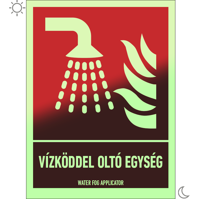 Vízköddel oltó egység utánvilágító matricaa (ISO 7010-F011 piktogram + felirat) 150x200 mm TUT066002UTV01500200 utánvilágító öntapadó 150 mm 200 mm 0.5 mm db 1450 Ft 1842 Ft