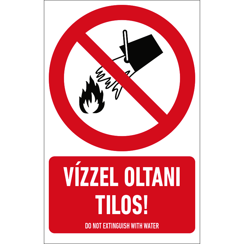 | Vízzel oltani tilos! tábla (ISO 7010-P011 piktogram + felirat) 160x250 mm TIT027001PVC01600250 | PVC 1 mm | 160 mm | 250 mm | 1 mm | db | 825 Ft | 1048 Ft |