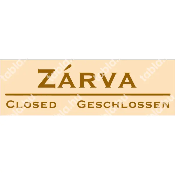 | Zárva tábla (bézs/barna, három nyelvű) 250x80 mm UZT010001PVC02500080 | PVC 1 mm | 250 mm | 80 mm | 1 mm | db | 545 Ft | 692 Ft |