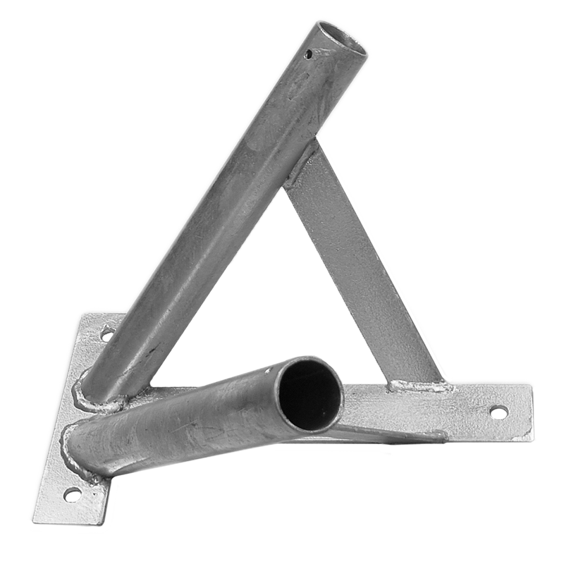 Épülethomlokzatra rögzíthető 2 ágú horganyzott zászlótartó, a rúdtartó belső átmérője: 30 mm. Mérete kompatibilis az általunk forgalmazott zászlórudakkal.