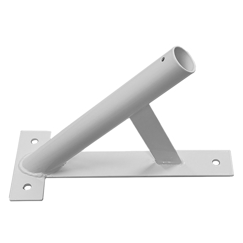 Épülethomlokzatra rögzíthető 1 ágú horganyzott és fehérre porfestett zászlótartó, a rúdtartó belső átmérője: 30 mm Mérete kompatibilis az általunk forgalmazott zászlórudakkal.